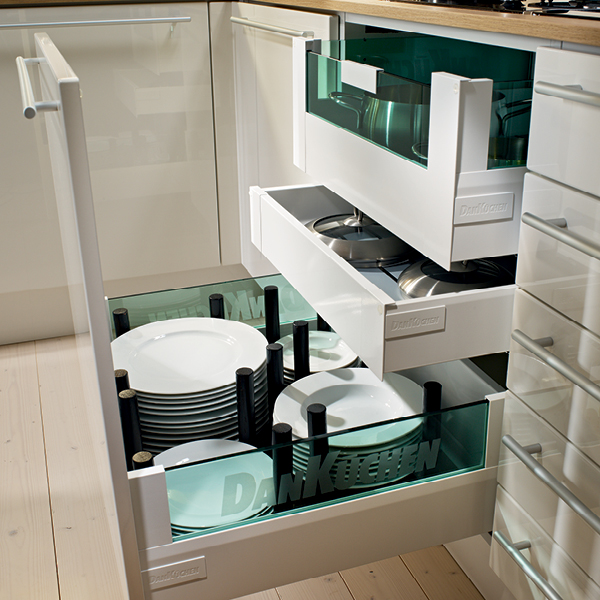 Za još ljepši izgled i individualnost, DAN kuhinje nude staklene bočne stranice na ladicama. Za vas, naravno, BESPLATNO!